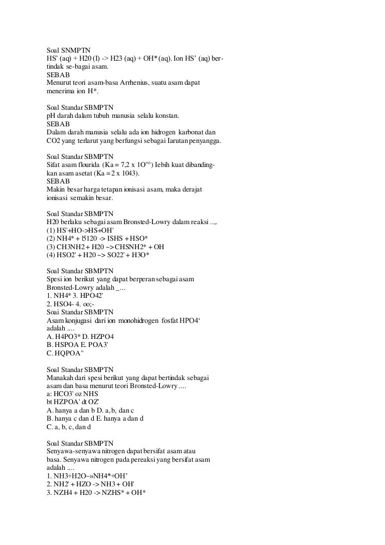 Soal Sbmptn Titrasi Asam Basa - Sbmptn Kisi Kisi Materi Soal Kimia Sbmptn 2016 1 Struktur Atom 2 Sistem Periodik Unsur 3 Ikatan Kimia 4 Asam Basa Bronsted Lowry 5 Ph Asam Basa 6 Titrasi Asam Basa 7 : Zat pentiter dibagi menjadi dua jenis yaitu :