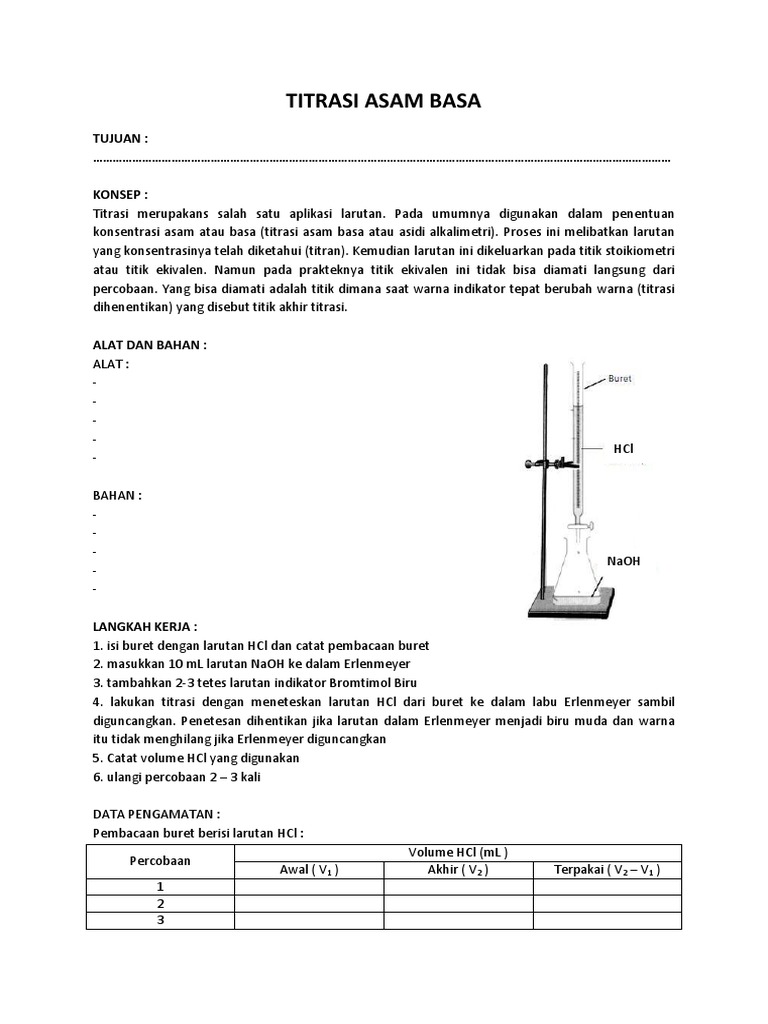 Soal Sbmptn Titrasi Asam Basa - Sbmptn Kisi Kisi Materi Soal Kimia Sbmptn 2016 1 Struktur Atom 2 Sistem Periodik Unsur 3 Ikatan Kimia 4 Asam Basa Bronsted Lowry 5 Ph Asam Basa 6 Titrasi Asam Basa 7 : Zat pentiter dibagi menjadi dua jenis yaitu :. Diketahui sampel ba(oh)2sebanyak 25 ml tetap dititrasi oleh 100 ml hcl 0,1 m, tentukan konsentrasi sampel tersebut! Jadi, nilai kemolaran pada larutan ba(oh)2adalah 0,1 m. Kedua larutan tersebut adalah hcl dimana hcl adalah asam kuat. Rumus umumnya adalah sebagai berikut: Penambahan peniter dihentikan ketika sudah terjadi perubahan warna yang tidak hilang ketika larutan digoyangkan, yang menandakan telah mencapai titik akhir.
